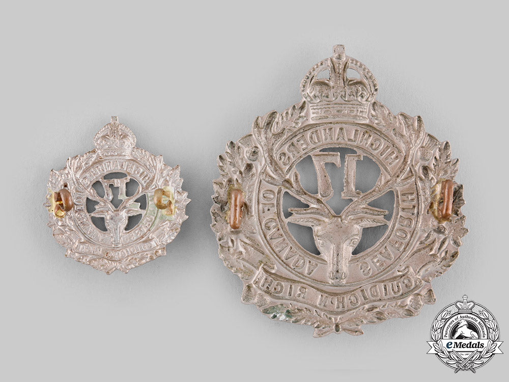 Canada, Cef. A 17Th Infantry Battalion Glengarry & Collar Badges, C.1915