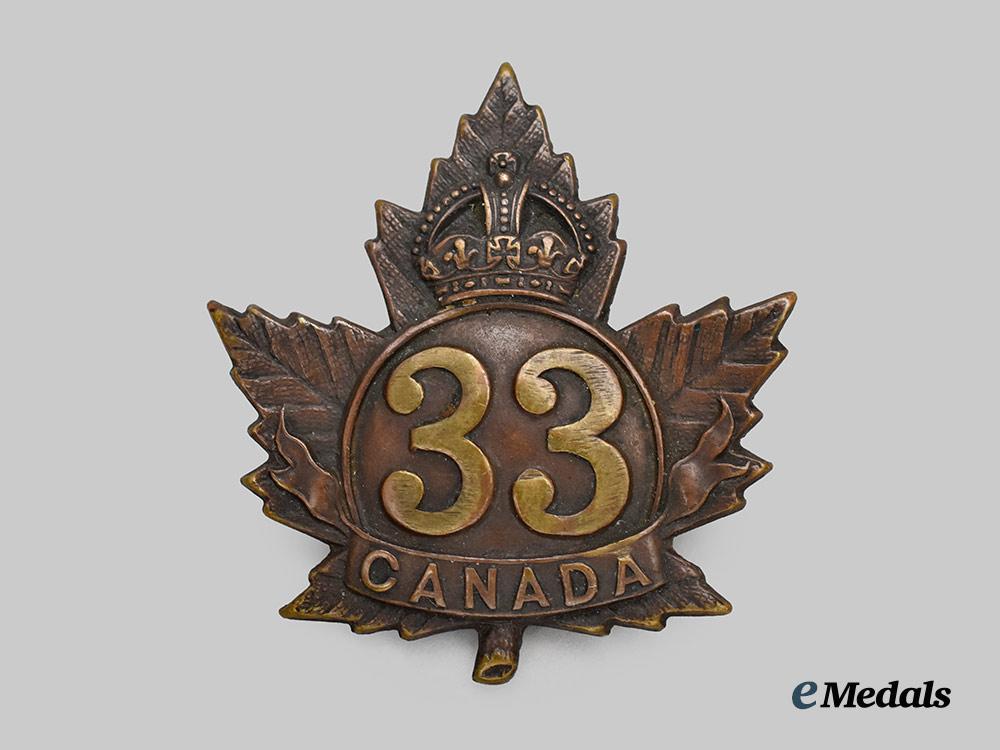 Canada, CEF. A 33rd Infantry Battalion Cap Badge, Type II with "33" within a circle