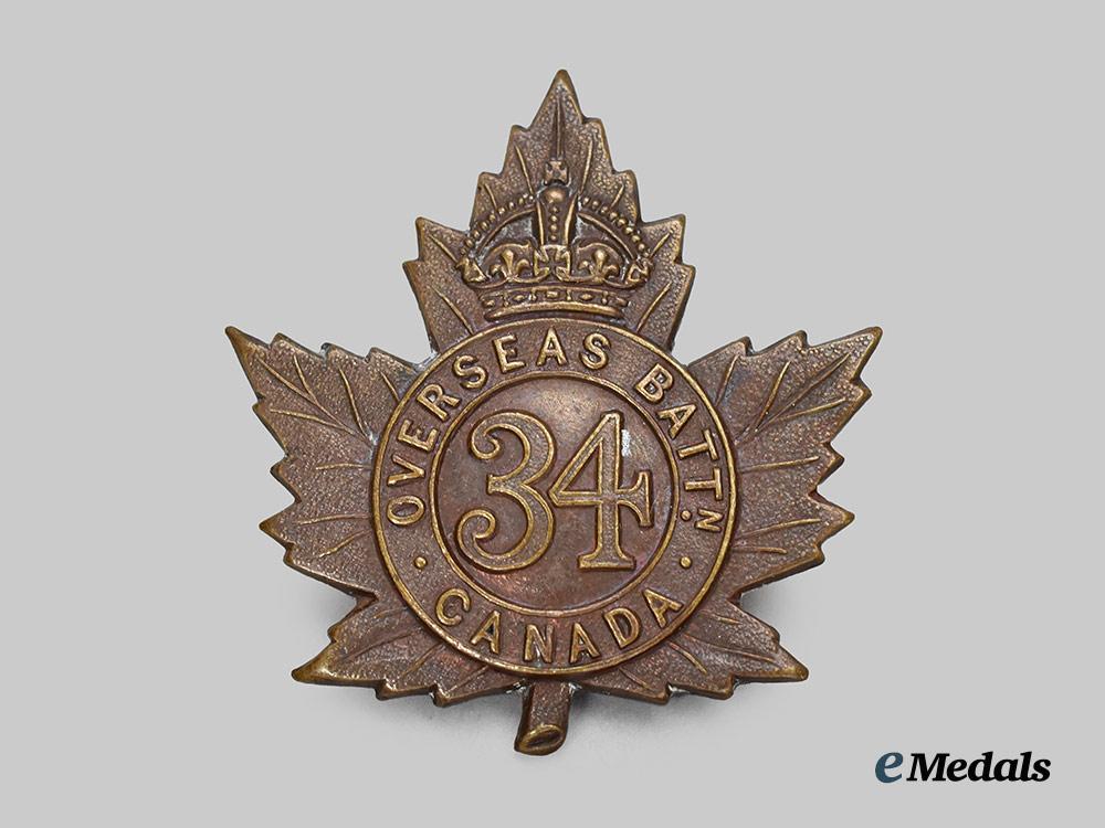 Canada, CEF. A 34th Infantry Battalion Cap Badge, Type I with "34" within a circle