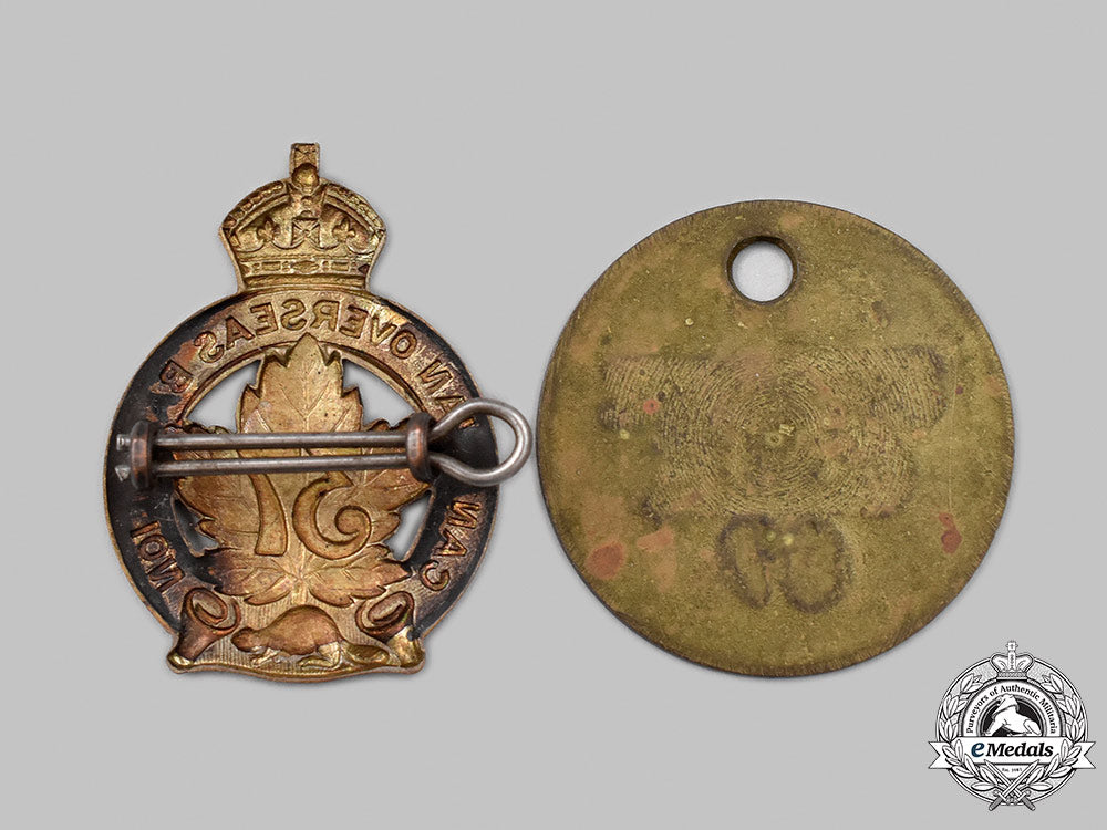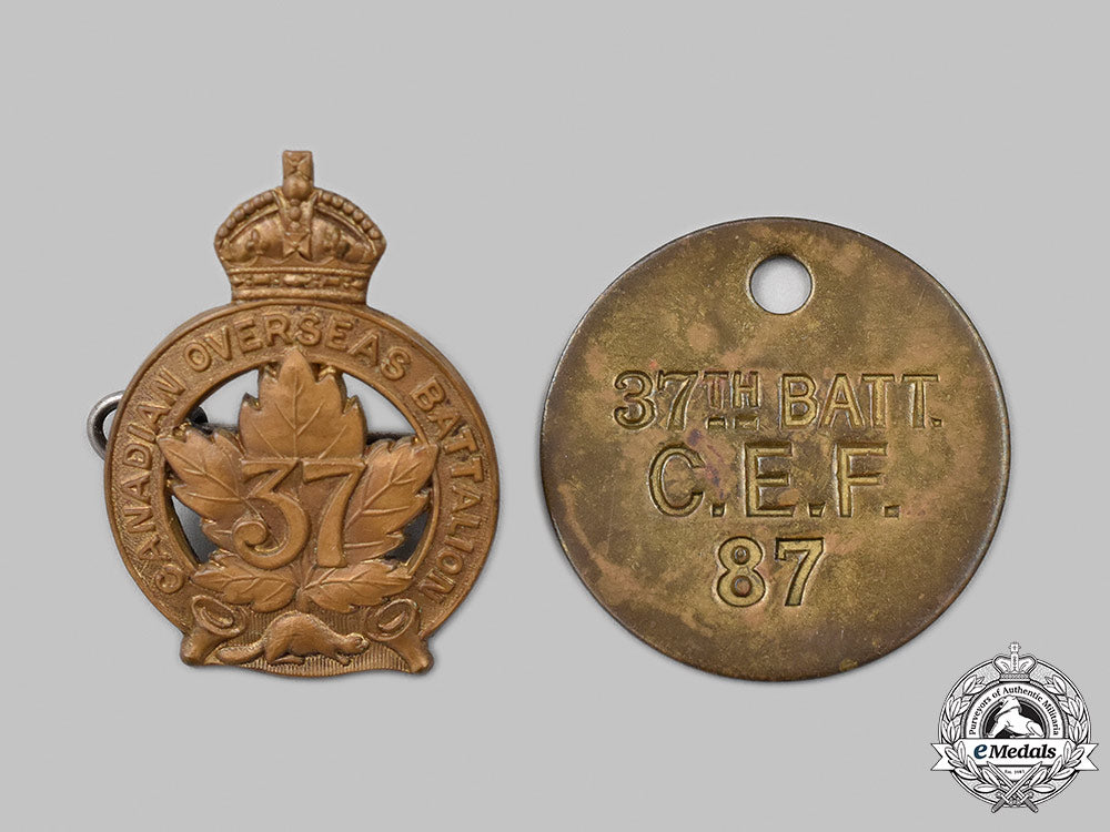 Canada, Cef. A 37Th Infantry Battalion Cap Badge And Trunk Identification Tag