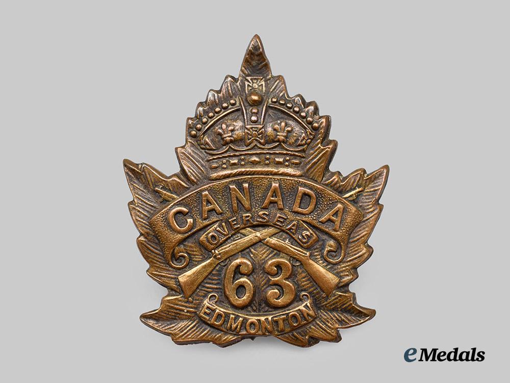 Canada, CEF. A 63rd Infantry Battalion Cap Badge, Type I, by Jackson Bros