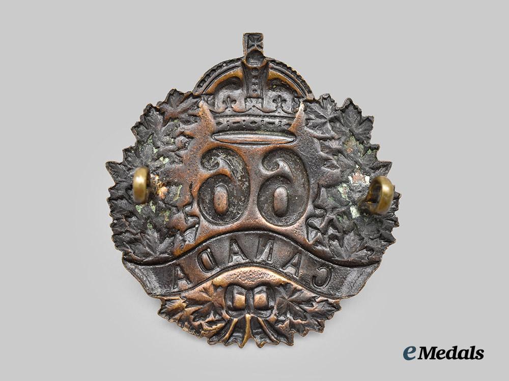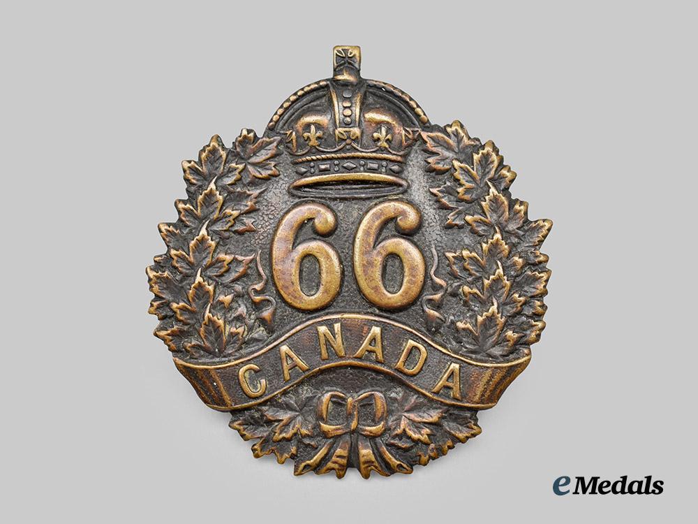 Canada, CEF. A 66th Infantry Battalion Cap Badge, Type I (with "Canada" Ribbon Banner)