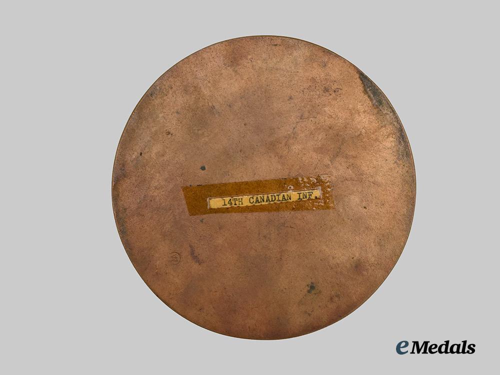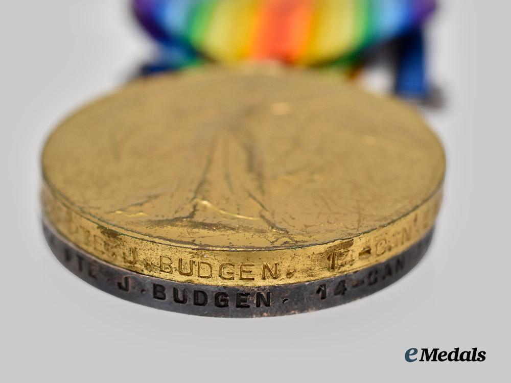 A Victory Medal, in bronze gilt, full size, rim impressed 25564 PTE. J. BUDGEN. 14-CAN. INF., light wear and scratches, very fine.