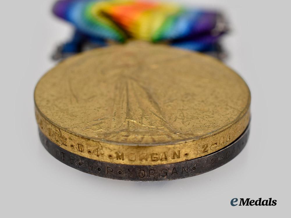 A Victory Medal, in bronze gilt, full size, rim impressed 8484 PTE. W. P. MORGAN. 2-CAN.INF., light wear and scratches, very fine.