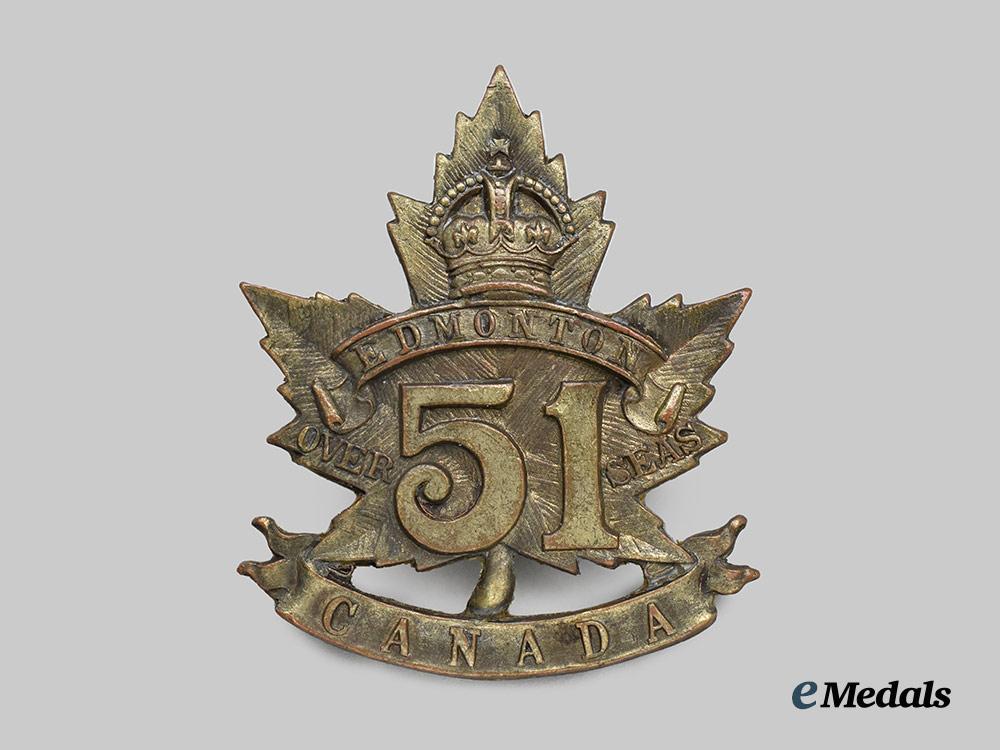 Canada, CEF. First War 51st Infantry Battalion "Edmonton Regiment" Cap Badge, Type I with "Overseas"