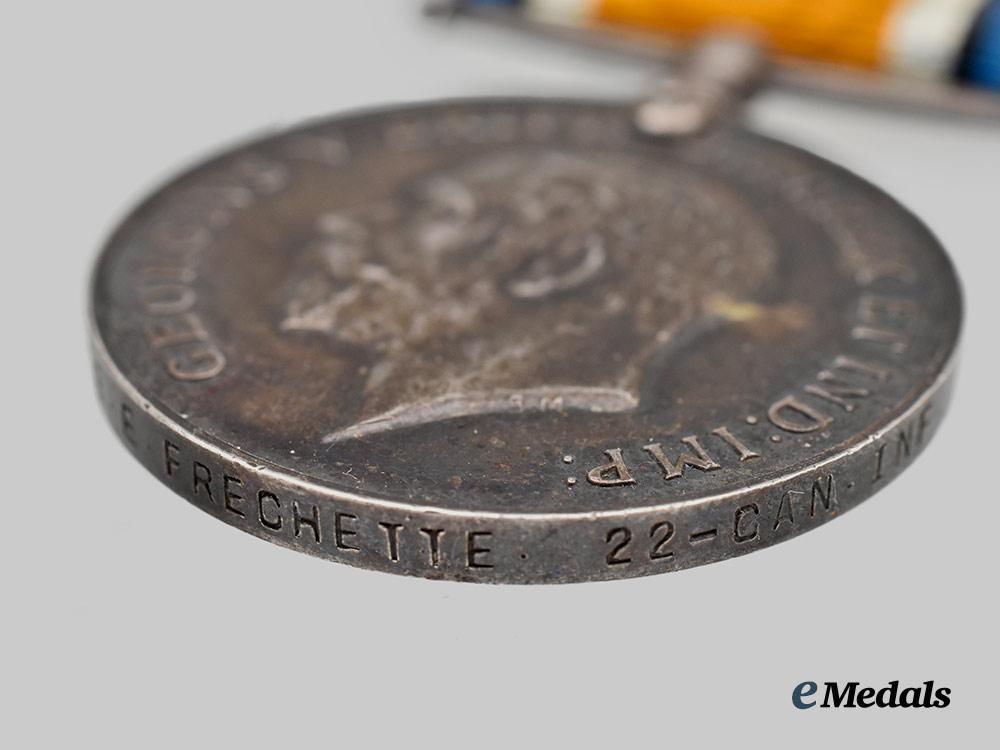 A dual first war medal grouping named to Private Emile Frechette of the Royal 22nd Infantry Regiment, consisting of: