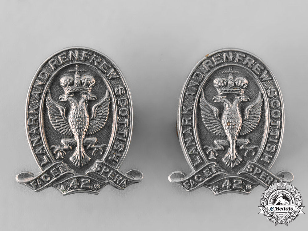 Canada, Commonwealth. A Lanark And Renfrew Scottish Regiment Collar Badge Pair