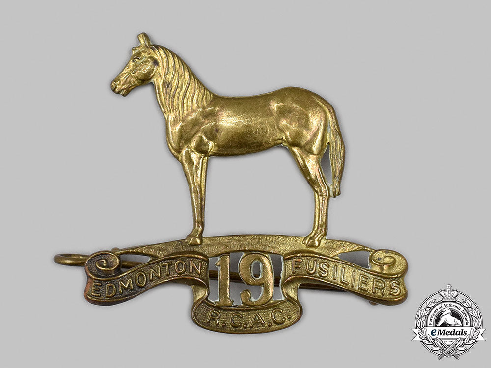 Footnote: The 19th Alberta Dragoons originated in Edmonton, Alberta on February 1, 1908, when the 19th The Alberta Mounted Rifles were authorized to be formed and was redesignated as the 19th Alberta Dragoons on January 3, 1911. On February 16, 1936, it was amalgamated with The Alberta Mounted Rifles. It was redesignated the 19th (Reserve) Alberta Dragoons on November 7, 1940. On April 1, 1946, it was amalgamated with the 2nd (Reserve) Battalion, The Edmonton Fusiliers and redesignated as the 19th (Alberta) Armoured Car Regiment, RCAC. It was redesignated the 19th Alberta Armoured Car Regiment on February 4, 1949, the 19th Alberta Dragoons (19th Armoured Car Regiment) on November 1, 1954 and the 19th Alberta Dragoons on May 19, 1958. It was reduced to nil strength and transferred to the Supplementary Order of Battle on February 28, 1965. In 2006, the 19th Alberta Dragoons were amalgamated with the South Alberta Light Horse, which retained that designation. The regiment perpetuated the 3rd Regiment, Canadian Mounted Rifles, Canadian Expeditionary Force; the 9th Battalion, CEF; 66th Battalion (Edmonton Guards), CEF; 138th (Edmonton, Alberta) Battalion, CEF; and 202nd (Sportsman's) Battalion, CEF.