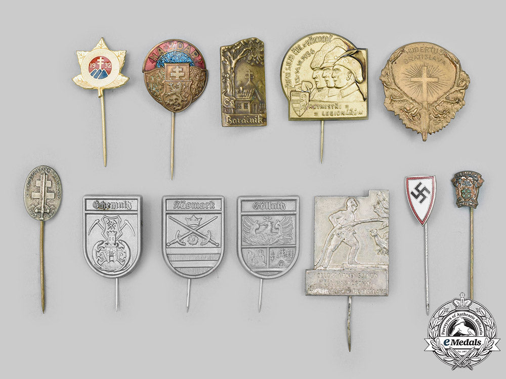 Czechoslovakia, I Republic; Slovakia, I Republic. A Lot Of Ten Stickpins And Two Badges