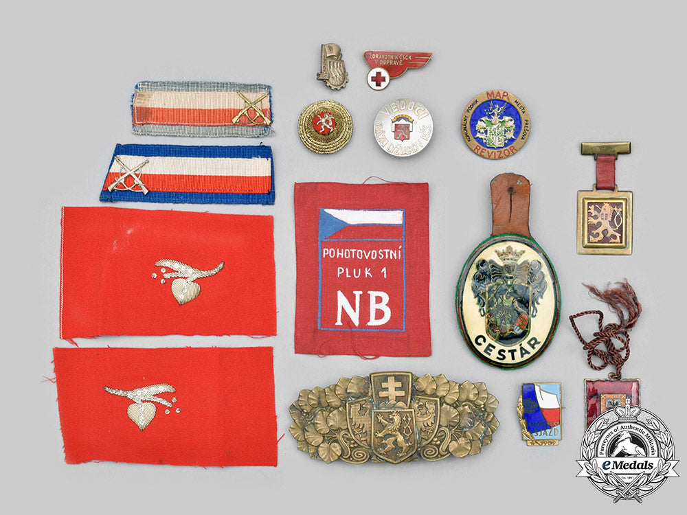 9. Slovak Congress Badge 1959 (in bronze gilt with red, white, light blue and dark blue enamels, measuring 24.5 mm (w) x 35.5 mm (h), horizontal pinback);