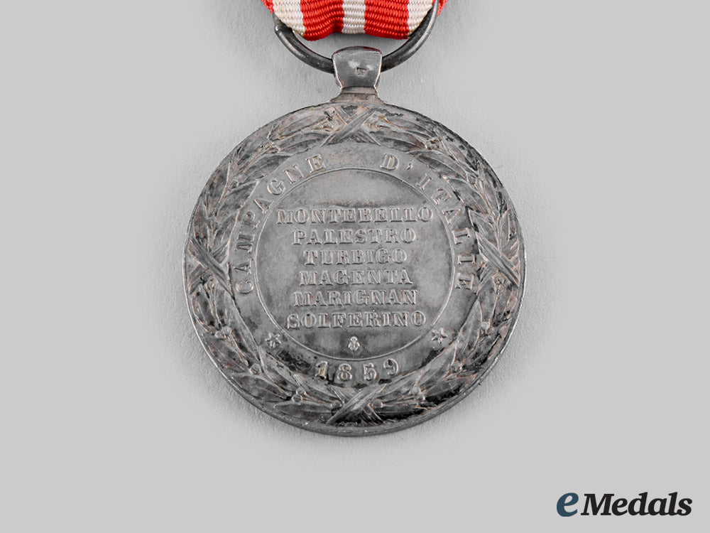 Footnote: The Commemorative Medal of the Italian Campaign 1859 was established by Napoleon III, following the 1859 French campaign in Italy during the Second Italian War of Independence, and awarded on propositions of the ministers for war and for the navy, to all soldiers, sailors and other military and support personnel of the French forces who took part in the 1859 Italian Campaign. All recipients also received a certificate of award.