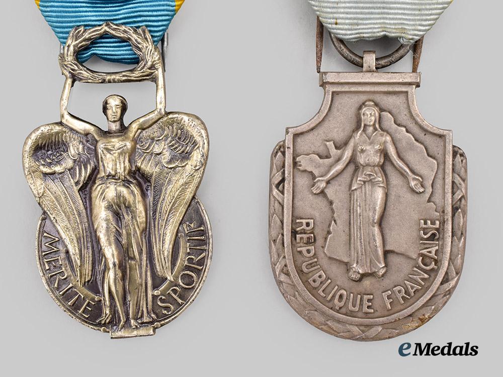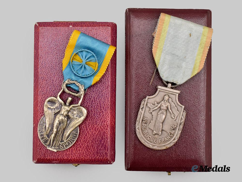An Order of Sport, Officer, in silvered bronze, cornucopia hallmark, measuring 29.5 mm (w) x 50 mm (h), worn on original ribbon with rosette, light contact, extremely fine. In original burgundy leatherette case, red velvet interior, measures 60 mm (w) x 100 mm (l) x 24 mm (d), light wear, hinge and clasp functional, very fine.