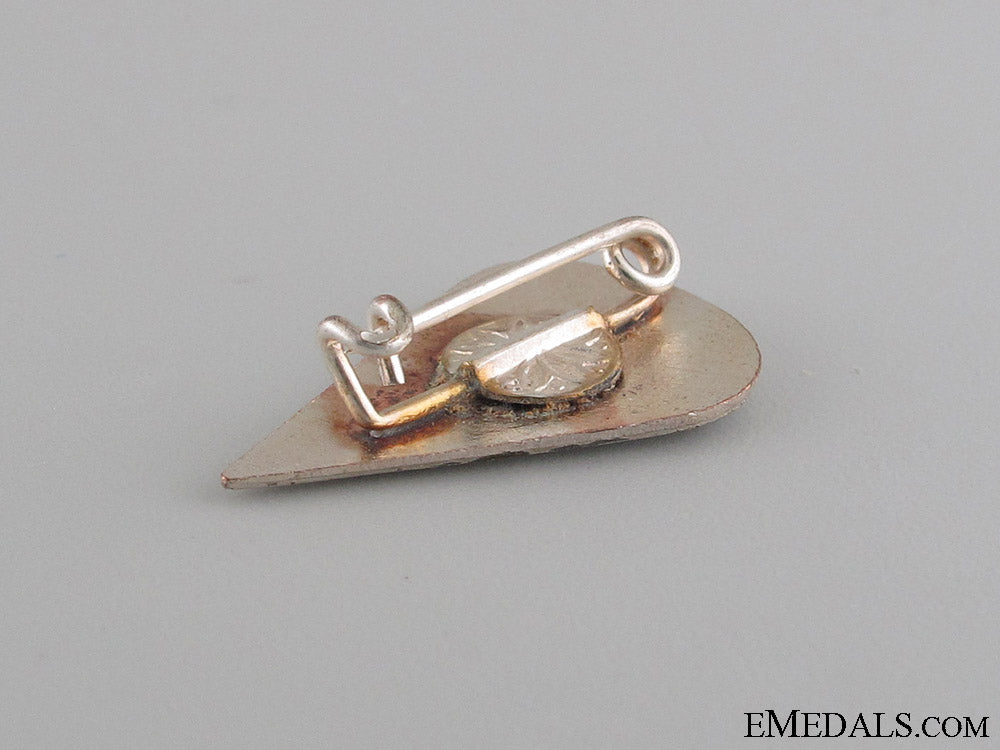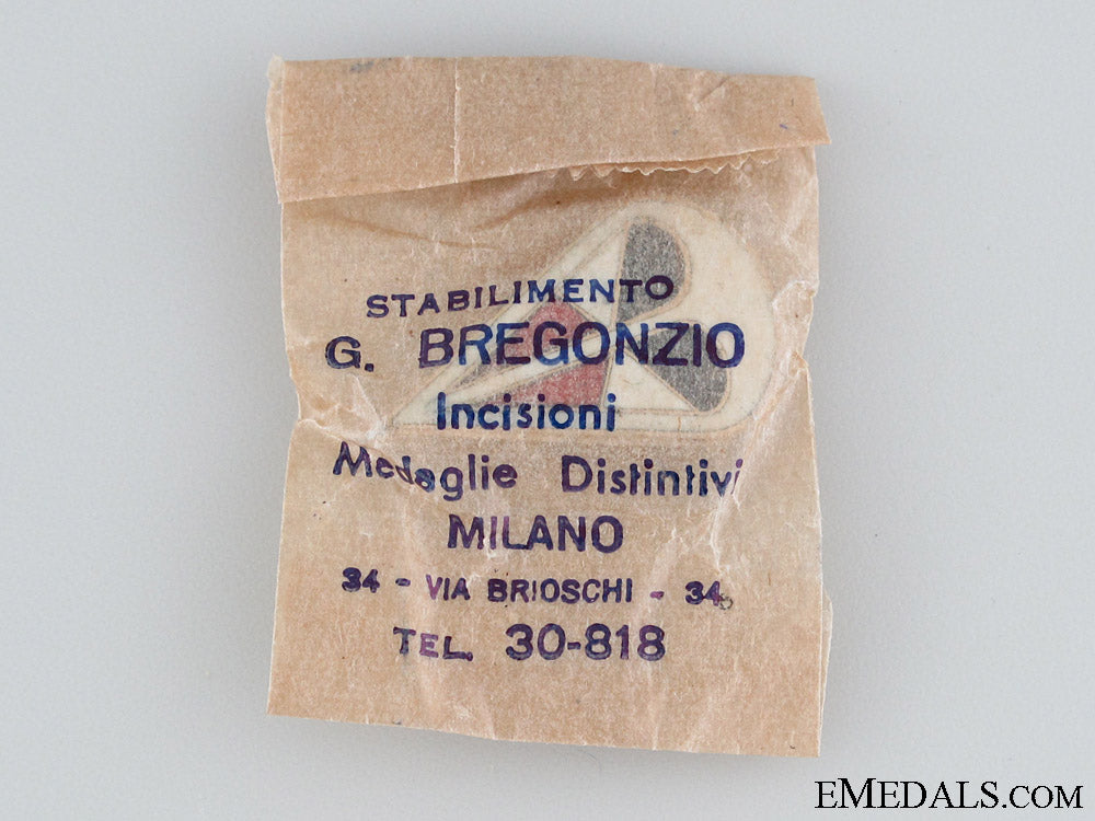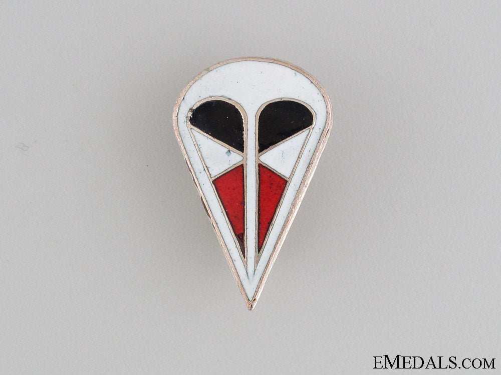 German 1st Parachute Corps Cap Badge - enameled version (16mm x 26mm) in silvered metal and enamels, unworn, mint condition, in paper bag of manufacturer in Milan (manufactured in 1944).