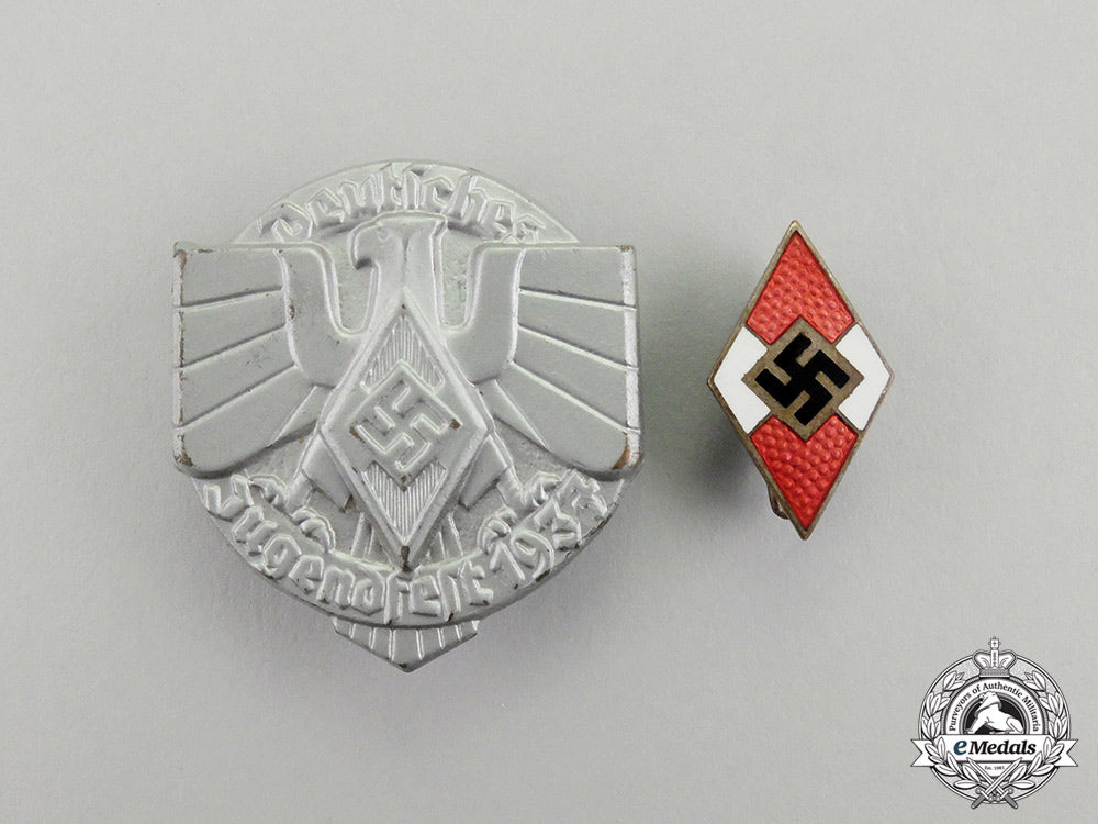 Germany. A 1937 German Festival Of Youths Badge With An Hj Membership Badge By Karl Wurster