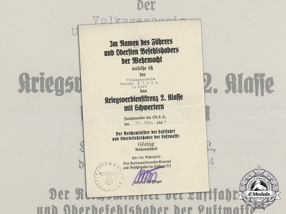 Germany. A War Merit Cross 2Nd Class With Swords To Female Recipient