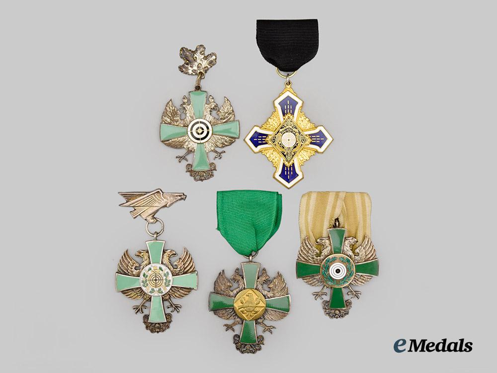 A lot of five Imperial German marksmanship awards, constructed in silver and bronze, in varying sizes, in fine to very fine condition.