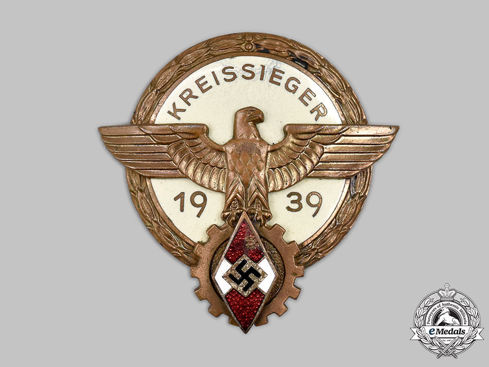 Germany, Hj. A 1939 National Trade Competition Victor’s Badge, Bronze Grade, By Hermann Aurich