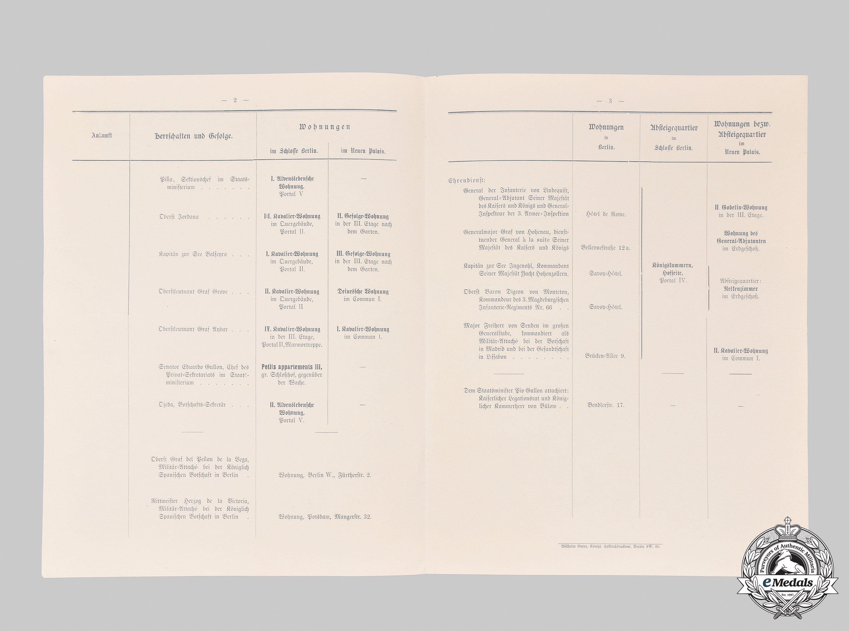 Germany, Imperial. A Program And Housing Plan For Visit Of King Of Spain To Berlin, 1905