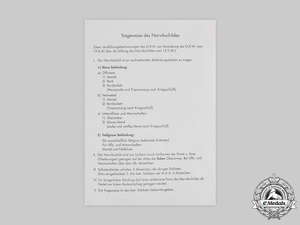 Germany, Kriegsmarine. An Official Authorization For Wearing Of The Narvik Shield, 1940