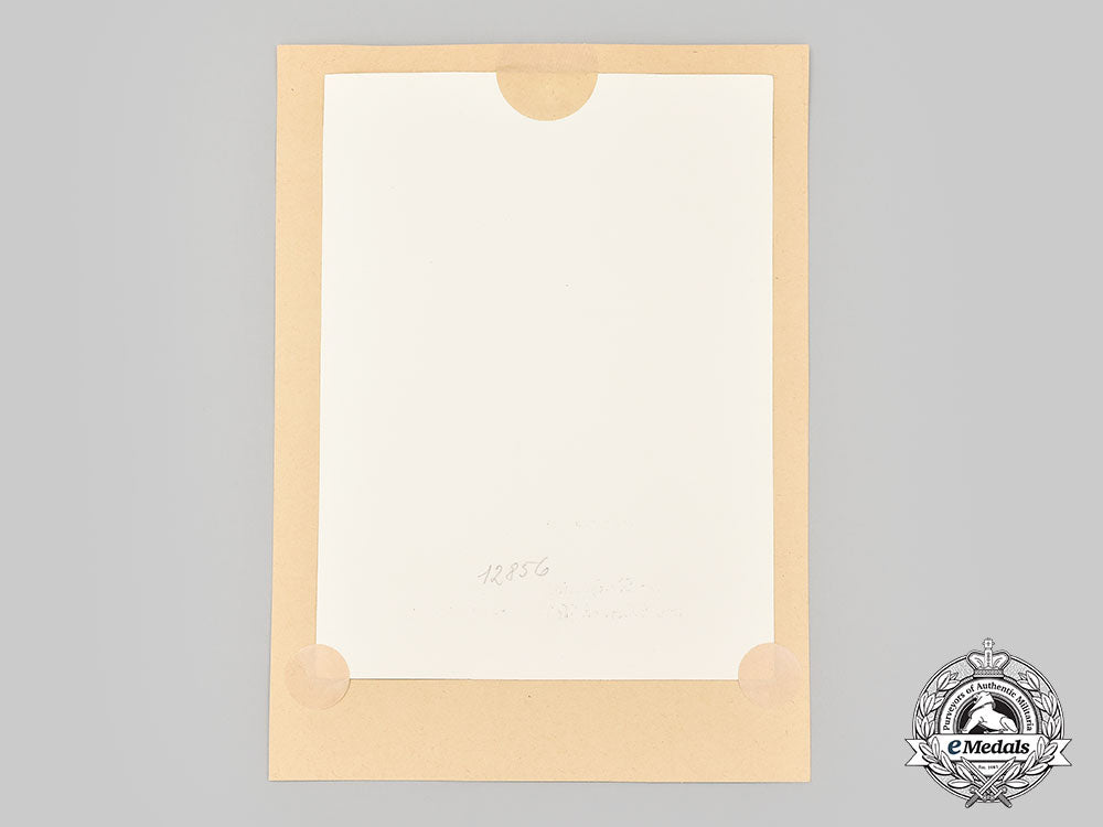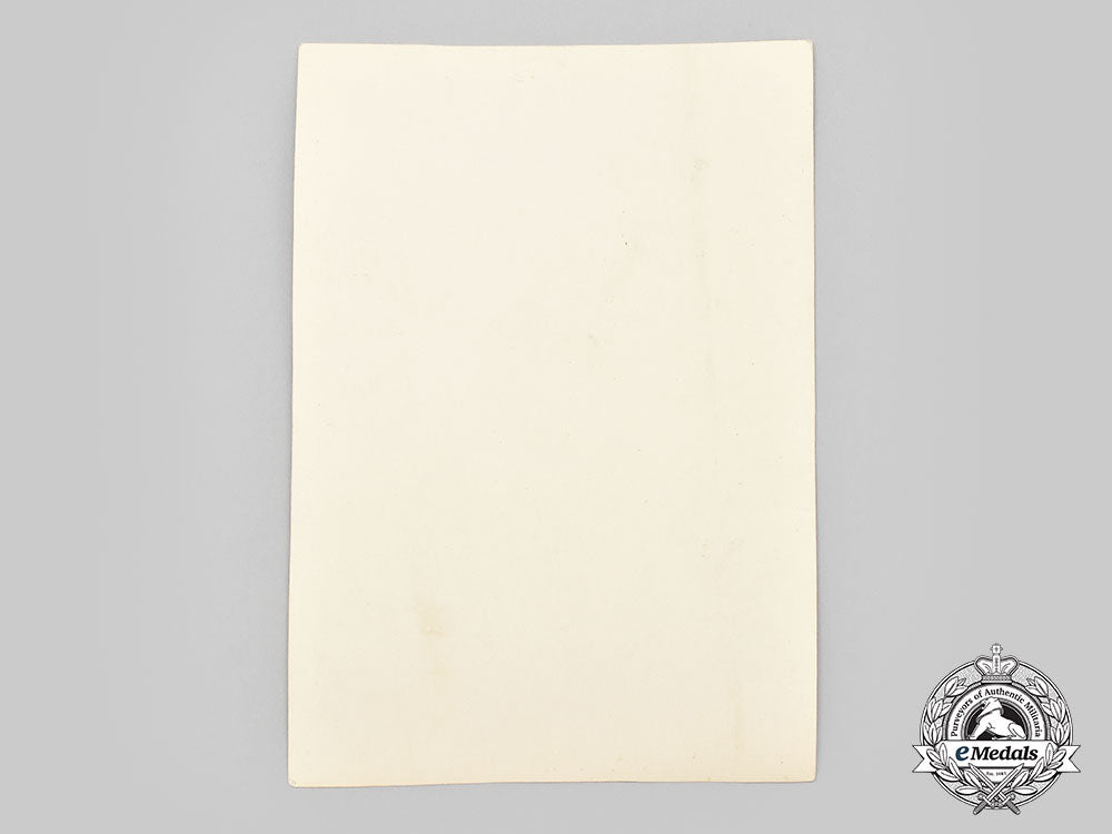 2. A certificate confirming Fellerer’s downing of an RAF Avro Lancaster bomber while serving with Nachtjagdgeschwader 6 (his 8th victory with the unit) on 7 July 1944, issued in Berlin on 17 October 1944, measuring 208 mm (w) x 148 mm (h), with a folding crease visible, in near extremely fine condition.