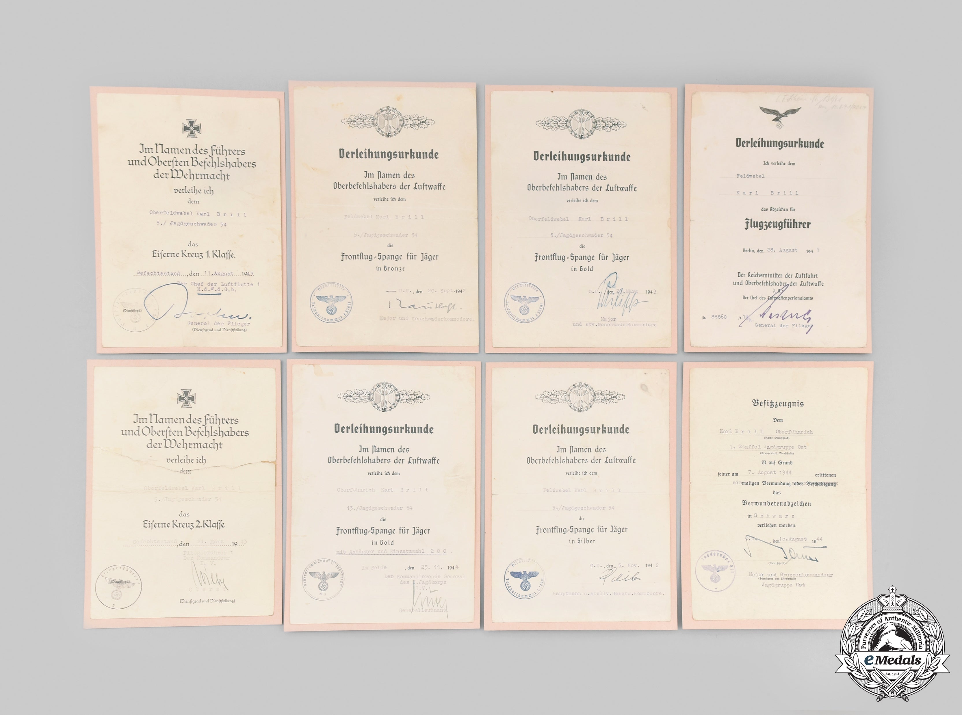 Germany, Luftwaffe. The Awards And Documents Of Leutnant Karl Brill, Luftwaffe Fighter Ace