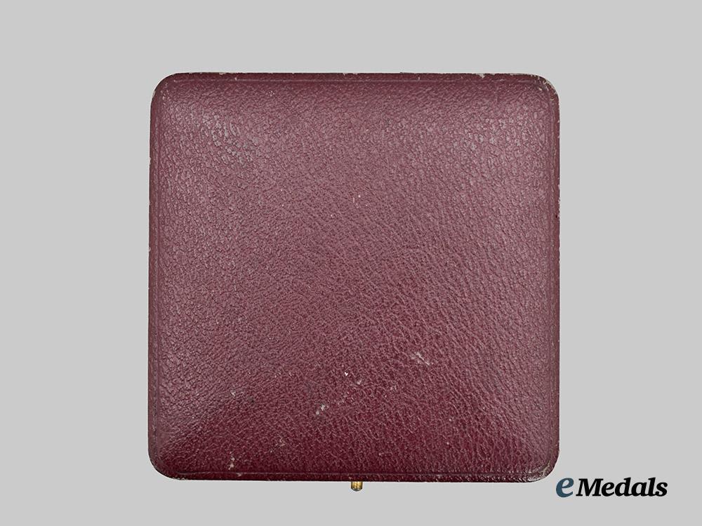(Wehrwettkämpfe Kempten Medaille mit Etui). Constructed of zink, the obverse consisting of a raised German national eagle perched on top of a mountainscape, situated above a Sturmabteilung (SA) logo flanked by an inscription of “DER SA-STANDARTE 20”, in turn circumscribed by an inscription of “WEHRWETTKÄMPFE KEMPTEN 1938” (“MILITARY CONTEST KEMPTEN 1938”), the reverse bearing a hand-engraved dedication to a victor in a 10,000 meter run, maker marked “CARL POELLATH, SCHROBENHAUSEN”, measuring 70 mm in diameter, accompanied by its original presentation case, constructed of a pressed card stock frame with a faux maroon leather exterior liner, the interior with a white rayon lid liner and intact hinge cover, with a fitted dark blue velvet medal bed, closing with a functional metal spring catch with exterior stud release, unmarked, measuring 105 mm (w) x 105 mm (l) x 20 mm (h), in overall extremely fine condition.
