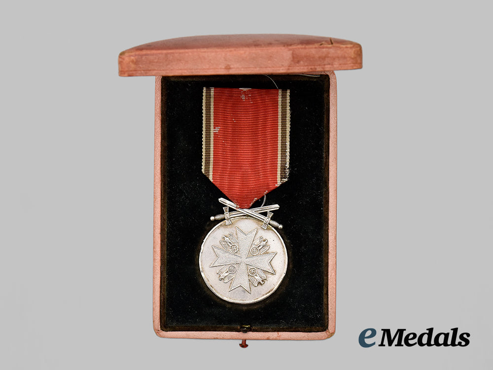 Germany, Third Reich. A Rare Order of the German Eagle, Silver Merit Medal with Swords and Case, Type I by Deschler & Sohn