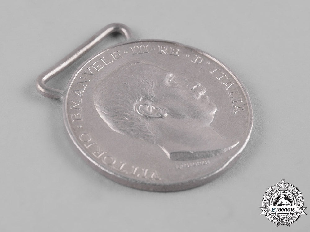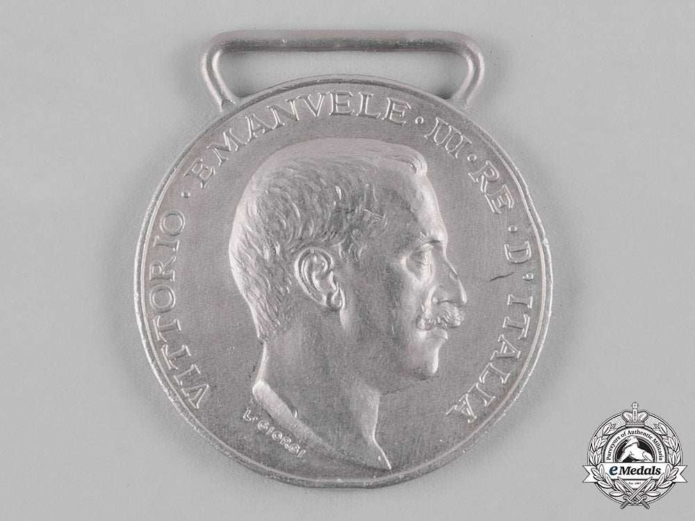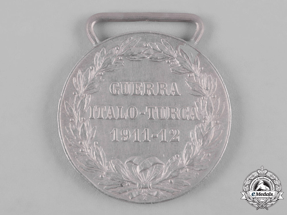(Medaglia commemorativa dell guerra Italo-Turca). Instituted in 1912. In silver, engraver marked "L. GIORGI" on the obverse, marked with a "Z" surmounted by a crown on the reverse, measuring 32 mm (w) x 36 mm (h) inclusive of its integral suspension, bruised, edge nicks, contact marks, original ribbon, very fine.