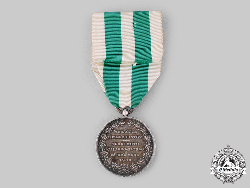 Footnote: The Commemorative Medal for the Messina (Calabria-Sicilian) Earthquake of 1908 was instituted on February 20, 1910 and awarded to those who assisted in relief efforts or who raised funds or made donations towards the recovery of the area.