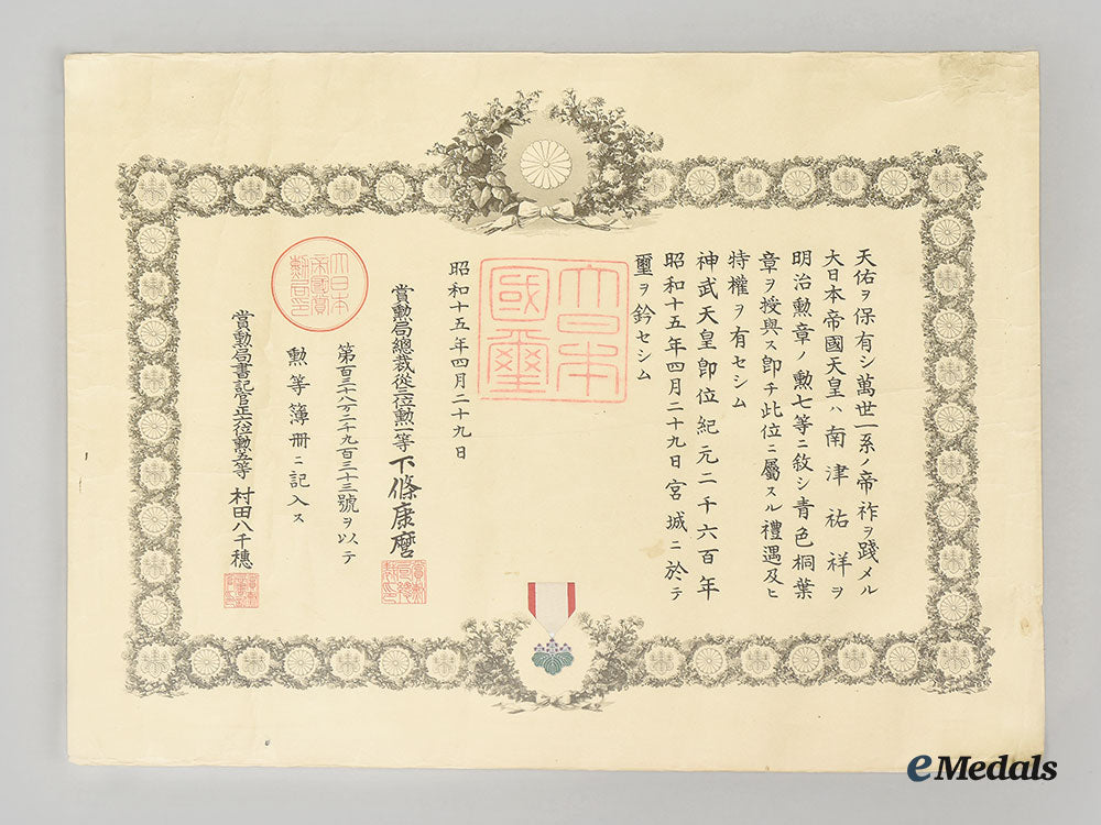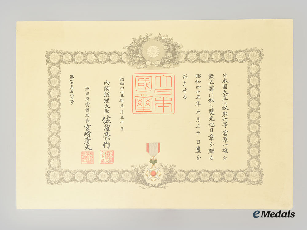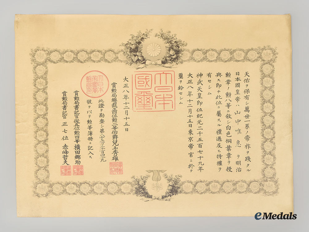 Japan, Empire. Three Order Of The Rising Sun Award Documents