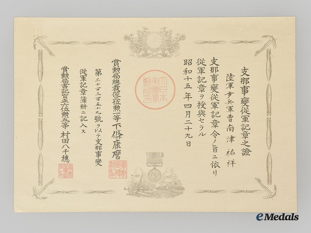 Japan, Empire. Two Award Documents Issued To A Member Of The Army