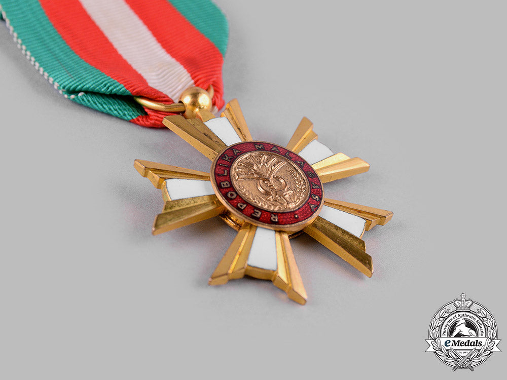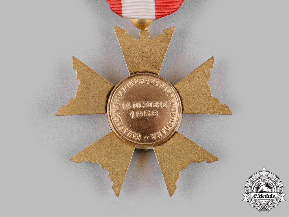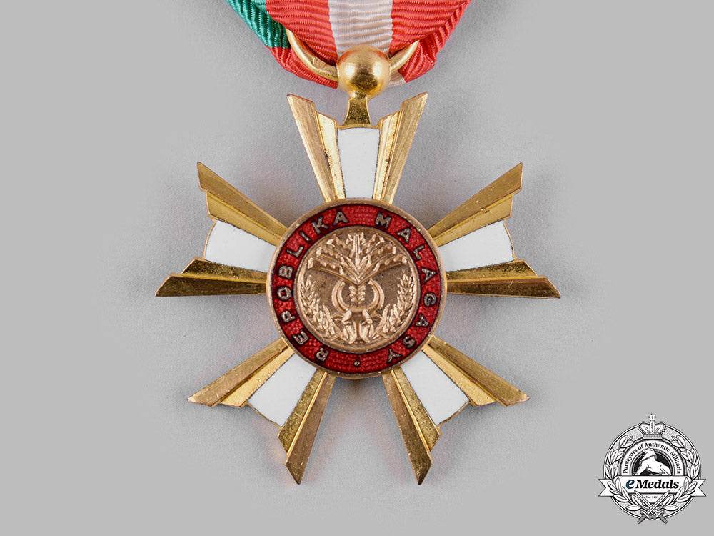 Footnote: The National Order of Madagascar was created in 1959, as commemoration of the Malagasy Republic proclamation, an autonomous state tied to France that became fully independent in 1960. In June 1975, the word ‘DEMOKRATIKA’ was added to the inscription on the obverse.