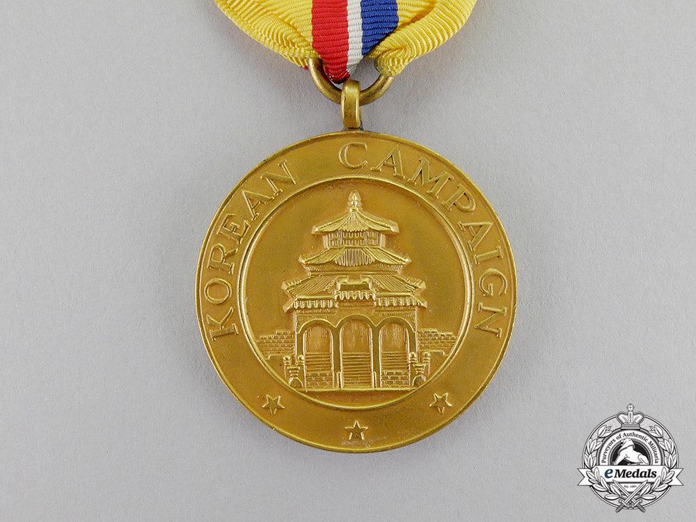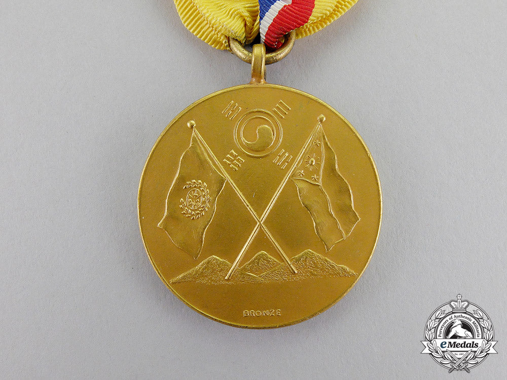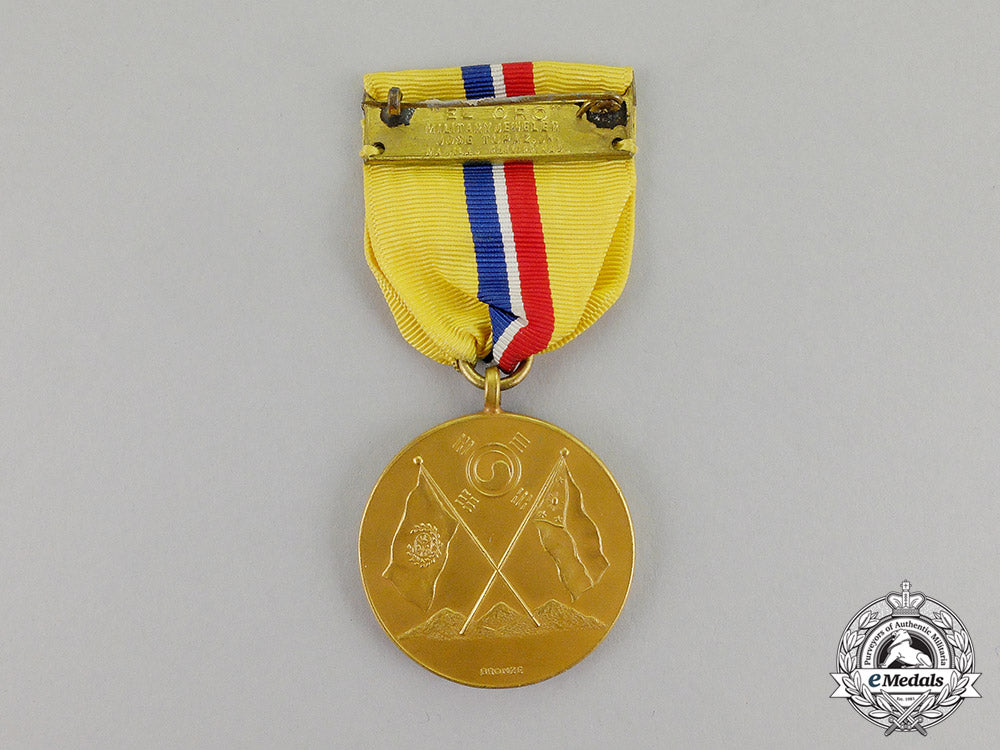 Bronze gilt, marked "BRONZE" on the reverse, 35.5 mm, original ribbon, brooch pinback maker marked " 'EL ORO' MILITARY JEWELER JOSE TUPAZ, JR. MANILA, PHILIPPINES", extremely fine. Accompanied by its 17. 2 mm (w) x 3.8 mm (h) enamelled ribbon bar with pinback.