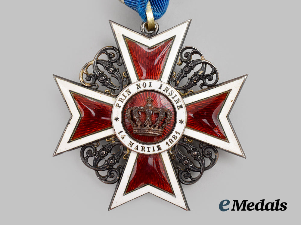 Footnote: The Order of the Crown of Romania is a chivalric order established on March 14, 1881 by King Carol I of Romania, to commemorate the establishment of the Kingdom of Romania. It was awarded as a state order until the end of the Romanian monarchy in 1947 and was revived on December 30, 2011 as a dynastic order. The order had five classes: Grand Cross, Grand Officer, Commander, Officer and Knight.