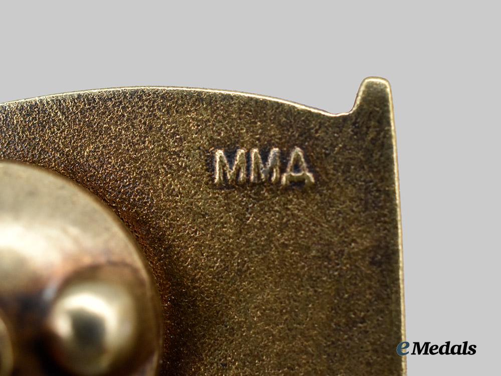 (c. 1955-1963 issue). Constructed of silvered bronze in the shape of a flag with red and blue enamels, the reverse with a threaded screw back consisting of a post and backing plate, marked by the Moscow Mint and numbered “434”, measuring 33.5 mm (w) x 26.5 mm (l), a scarce badge in extremely fine condition.