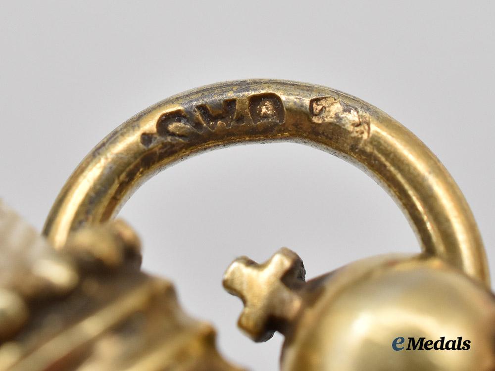 (Orden Svetog Save). Instituted January 23rd, 1883. Type II (1903-1921 issue, c. 1905). A fine quality manufacture Order of St. Sava, constructed of gilded silver, consisting of a Maltese cross with ball finals, the arms of the cross in light blue and white enamels and with Serbian double-eagles with shields on their chests in the quadrants between the arms of the cross, the obverse with a central white enameled medallion bearing a delicately hand-painted depiction of St. Sava wearing red robes, surrounded by a matching inscription in gilt within blue enamels, the reverse with a similar central white enameled medallion inscribed “1883” in raised silver gilt numbers within a blue enameled outer circlet decorated with gilded laurels, suspended from a hollow swivel crown as well as a pierced ball and swivel round loop from its period original triangular ribbon, marked “G.A.S.” for manufacture by Scheid of Vienna, marked with a Diana’s Head, “A” for manufacture in Vienna, as well as “900” for silver content, measuring 50.0 mm (w) x 81.2 mm (h - inclusive of crown suspension), enamel replacements and chips evident in the arms of the obverse side, worn on a segment of neck ribbon with button hole on each side, in near very fine condition.
