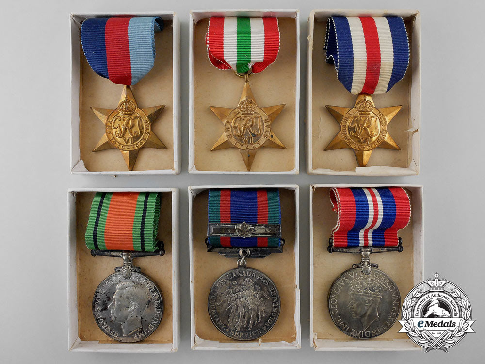 Six Second War Canadian Campaign Medals & Stars With Boxes