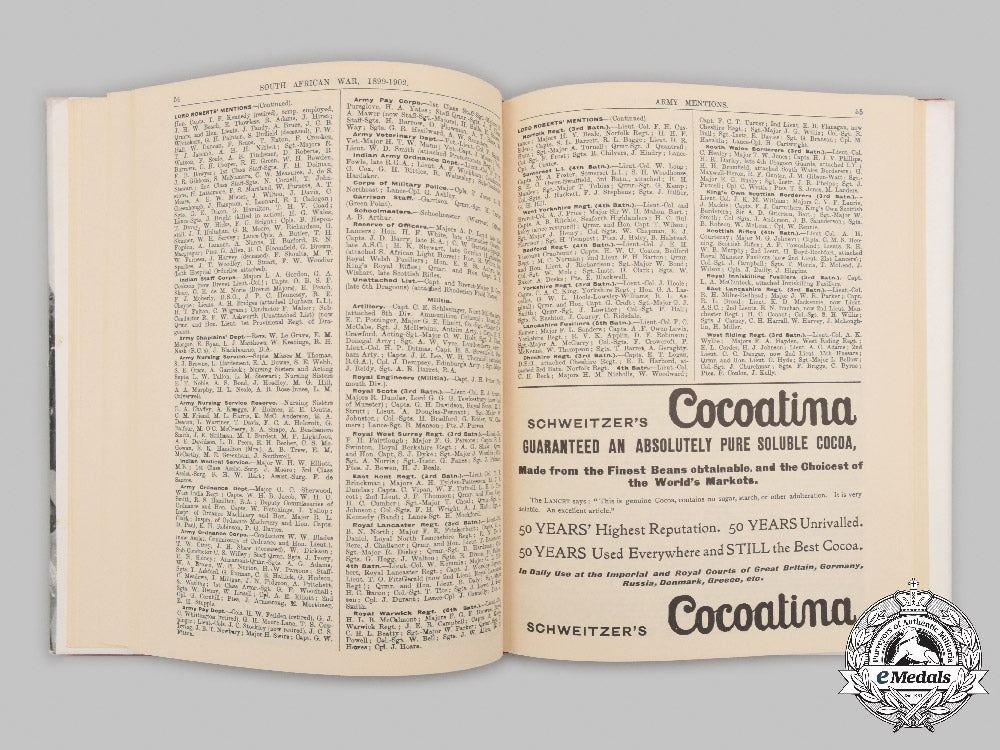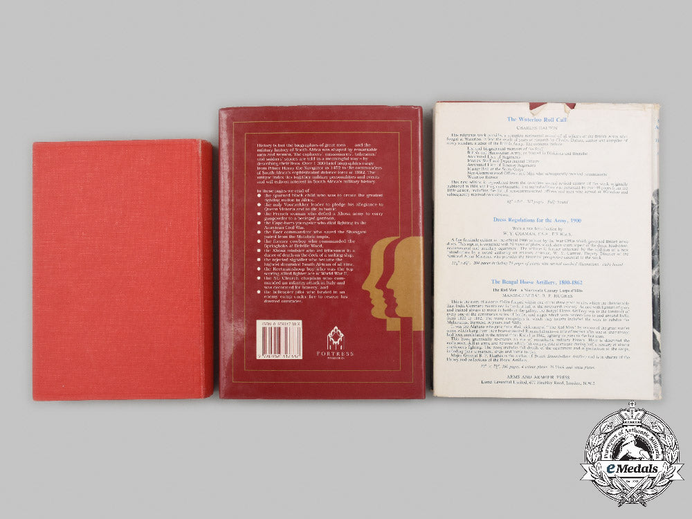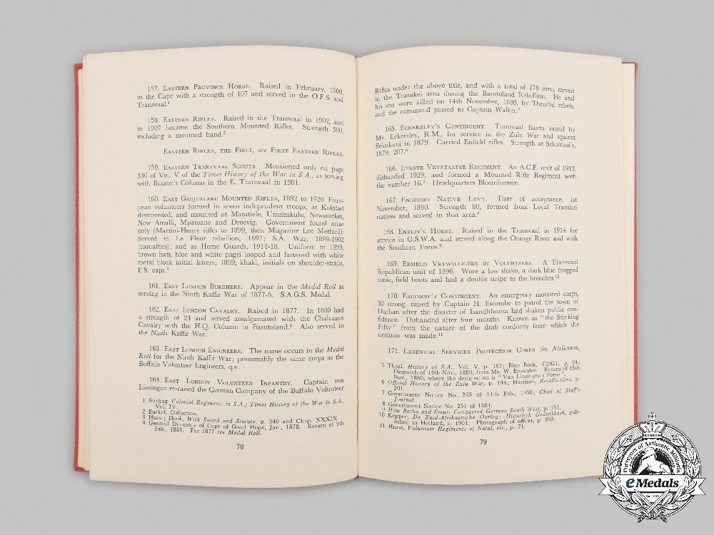 2. "South African War Honours and Awards 1899-1902" by the Army and Navy Gazette: hardcover, maroon cloth cover, the text on the spine in gold-coloured ink, with dust jacket, published by Arms and Armour Press of London, in association with Hayward and Hall Orders, Decorations and Campaign Medals of London, first published in 1902 by the Army and Navy Gazette, this edition published in 1971 by Lionel Leventhal Limited, reproduced and printed in Great Britain by Redwood Press Limited of Trowbridge & London.