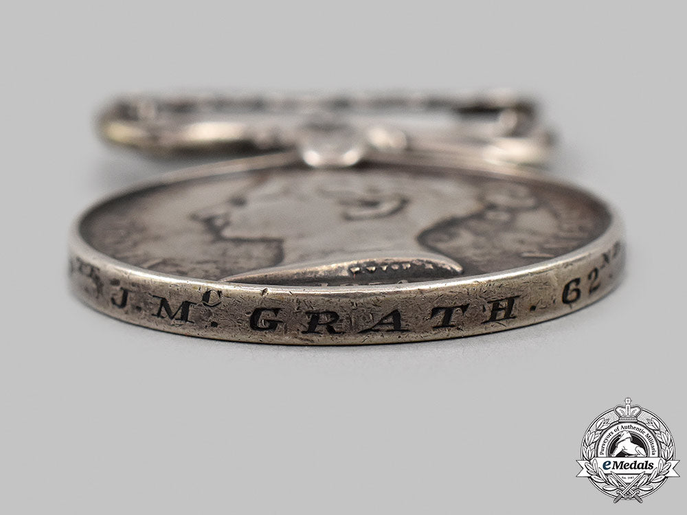SEBASTOPOL (3566 Pte J. McGRATH. 62nd FOOT.). Naming is engraved in italic capitals. In silver, bruised, edge nicks, contact marks, replacement ribbon, fine.