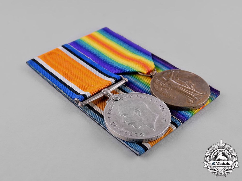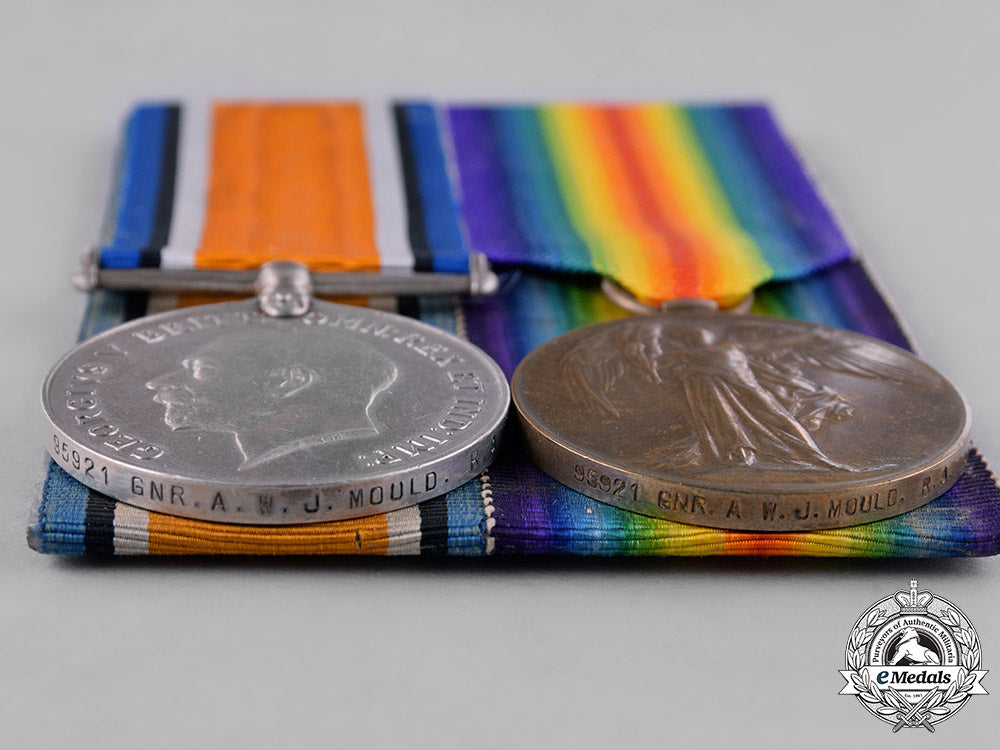 United Kingdom. A First War Pair, To Gunner Alfred W.j. Mould, Royal Artillery