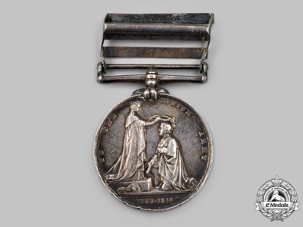 Footnote: The Military General Service Medal was established by General Order on June 1, 1847. The Medal was retroactively awarded to all Officers, Non-Commissioned Officers and enlisted men of the British Army who served in battles during the period of 1793-1814, including those in the French Revolutionary Wars (1792-1902), the Napoleonic Wars (1803-1815), and the Anglo-American War of 1812.