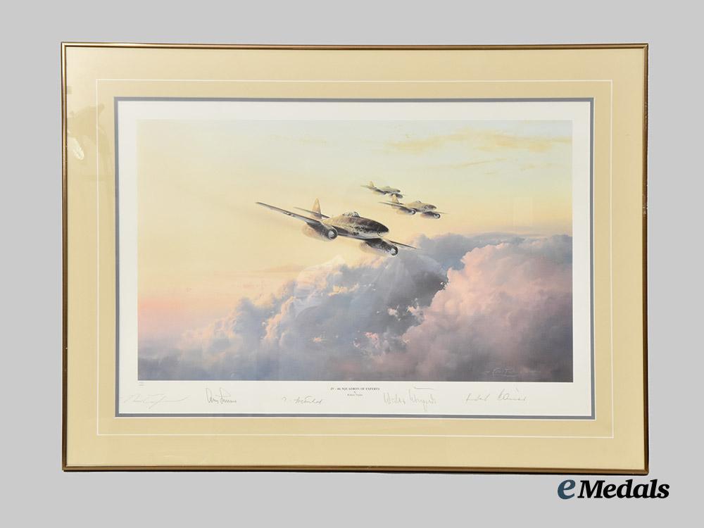2. JV-44 Squadron of Experts by Robert Taylor, signed by seven veterans, measuring 87 cm x 64 cm with frame;