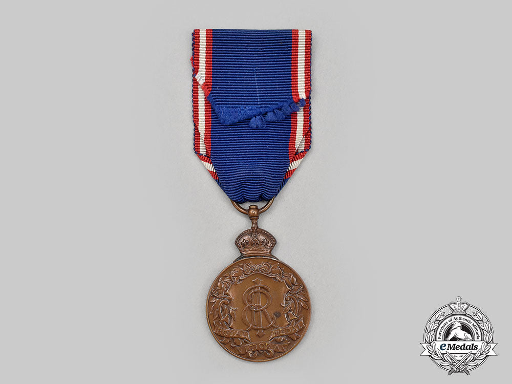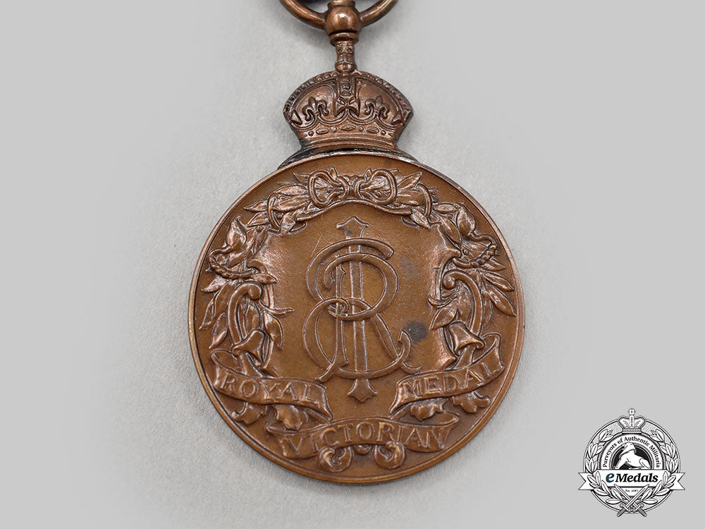 Footnote: The Royal Victorian Medal (RVM) is a decoration established by Queen Victoria in April 1896. On May 14, 1912, King George V further confirmed the institution of the medal with an additional royal warrant. A part of the Royal Victorian Order, it is a reward for personal service to the Sovereign or the royal family, and is the personal gift of the sovereign. It differs from other grades of the order in appearance and in the way it is worn. The medal has three levels: Bronze, Silver and Gold (silver gilt). Bars may be awarded to each level of Medal to denote subsequent awards. Recipients may continue to wear their original medal if they are awarded a higher level for further service. The medal may also be worn in addition to the badge of the Royal Victorian Order if this is later given to them. Recipients are entitled to use the post-nominal letters RVM.
