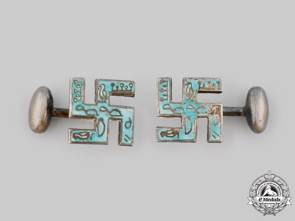 United Kingdom. A Set Of Silver Swastika Cufflinks By Joseph Gloster