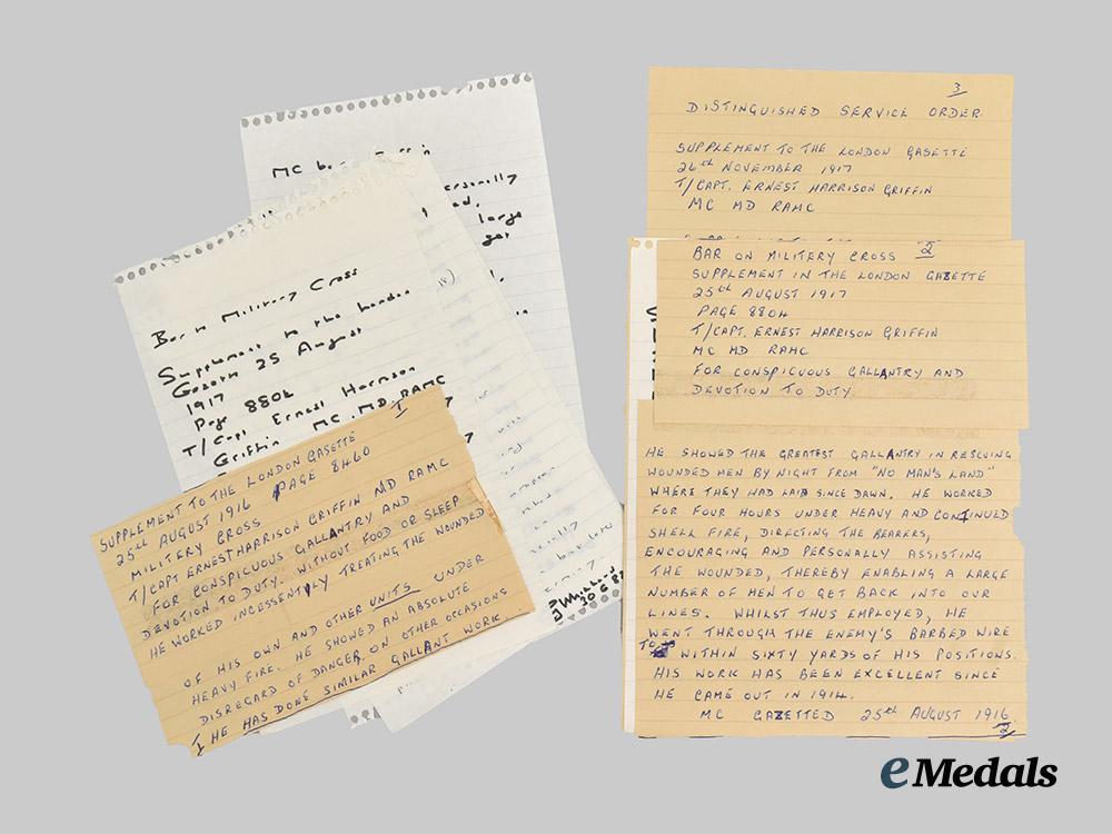 Footnote: Ernest Harrison Griffin (1877-1936) was a temporary Captain with the Royal Army Medical Corps during the First World War. He was mentioned in dispatches as being wounded on three occasions as well as reported killed in action but later reported as a prisoner of war in Germany. On three separate occasions, the 25th August, 1916, 25th August, 1917, and 26th November, 1917, the London Gazette reported on him being awarded the Military Cross, Bar to Military Cross, and Distinguished Service Order, respectively.