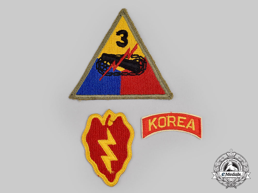 27. 3rd Armored Division Patch: in red, blue, yellow, black and olive green embroidery, measuring 100 mm (w) x 90 mm (h). Accompanied by assorted research papers. Extremely fine.