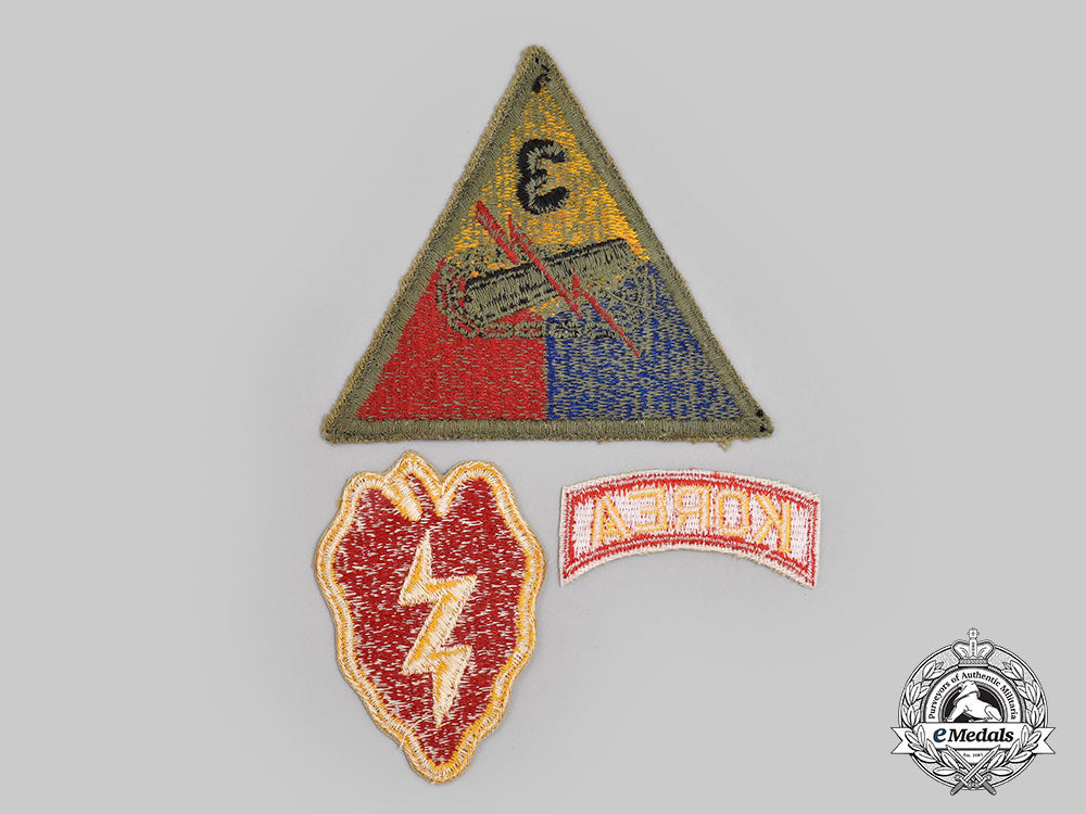25. 25th Infantry Division Patch: in red and yellow embroidery, measuring 50 mm (w) x 73 mm (h).