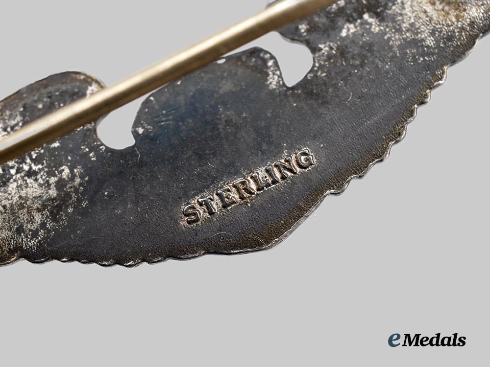 A Pilot Badge, center filed down to be plain, reduced size, reverse marked STERLING SILVER, two pins the reverse on each wing tip with a butterfly pinch clasp, measures 50.6 mm (w) x 13.7 mm (h), in fine condition.