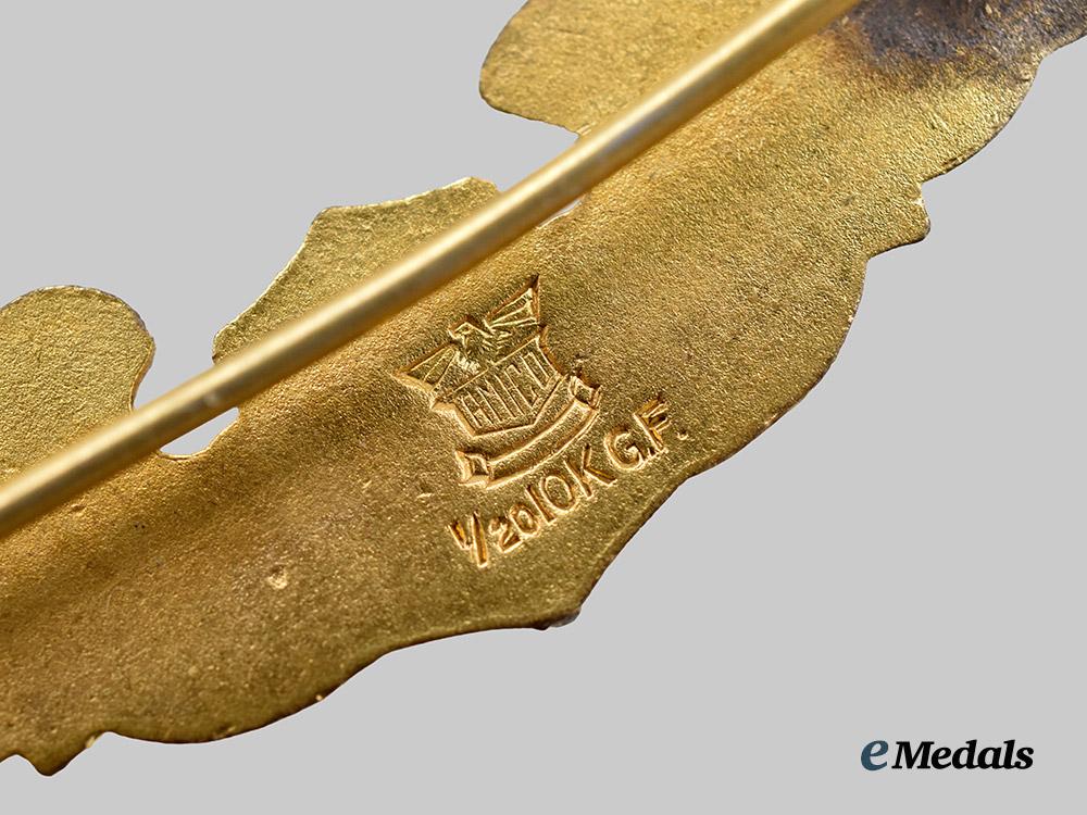 A Pilot Badge, gold filled, miniature, reverse marked AMICO, 1/2010KGF, horizontal pin, measures 39.7 mm (w) x 10.6 mm (h), in very fine condition.